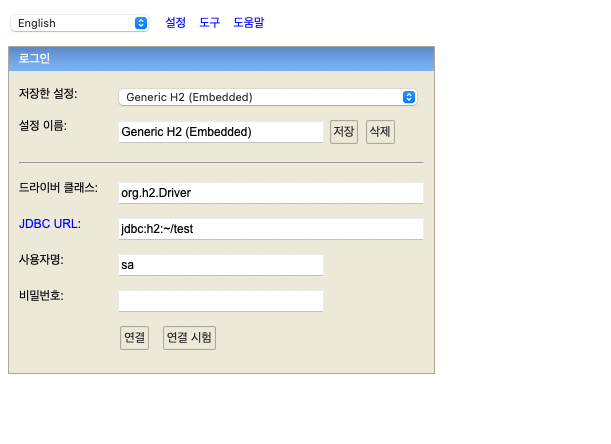 - 강의에서는 JDBC URL의 경로를 바꿔주었음 (이유는 더 여러곳에서 접근 할 수 있도록, 파일에 직접접근이 아닌 소켓을 통한 접근을 위해서)