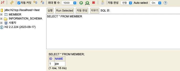 spring.jpa.show-sql = true //sql 문을 볼 수 있음