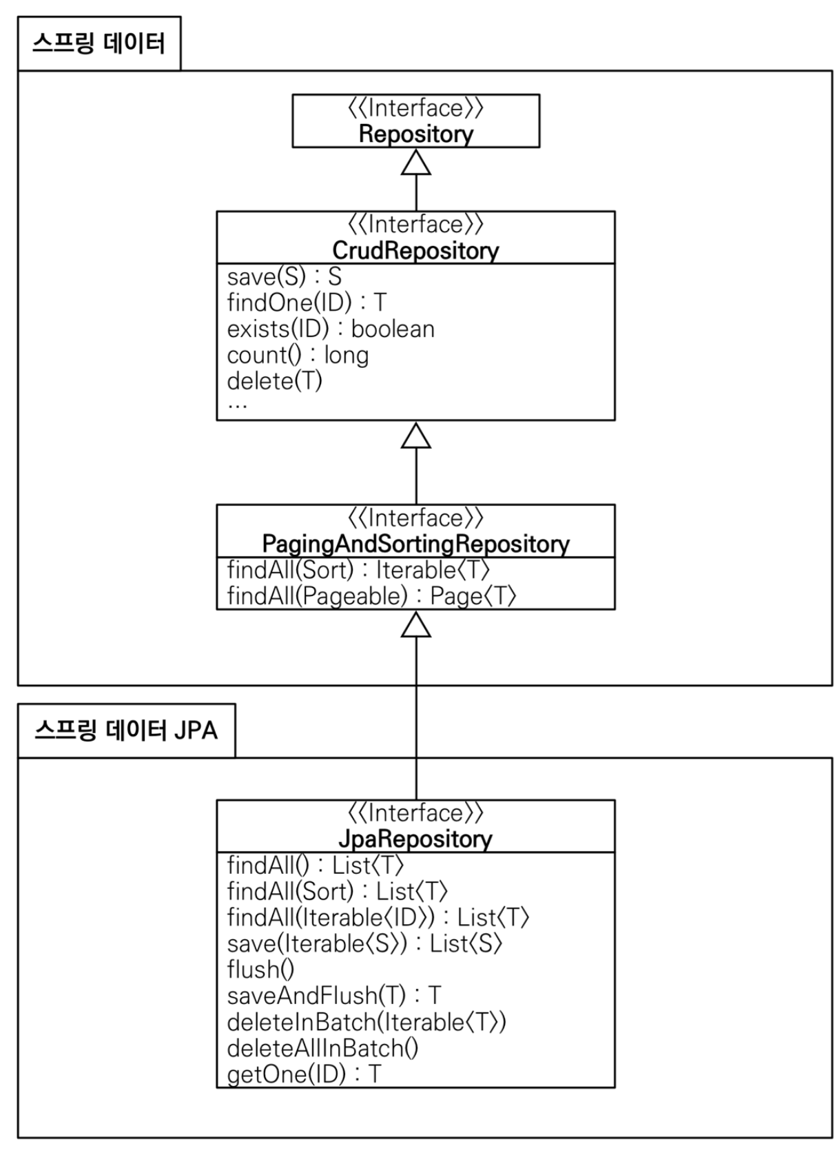 위 자료를 보면 기본적인 인터페이스를 통한 기본적인 CRUD를 제공해줌
