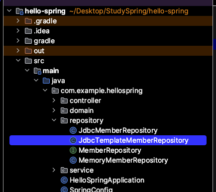 그 다음 SpringConfig 로 넘어가서 JdbcTemplateRepository로 바꿔주면 됨
