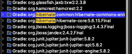 gradle을 build 해서 External Libraries에 hibernate 와 jpa가 있는 것을 확인