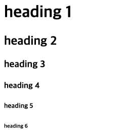 - Heading 태그 (h1 ~ h6) : heading을 줄여서 h, 제목의 레벨에 따라서 1 ~ 6까지가 있다.