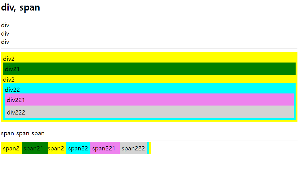 <h2>div, span</h2>