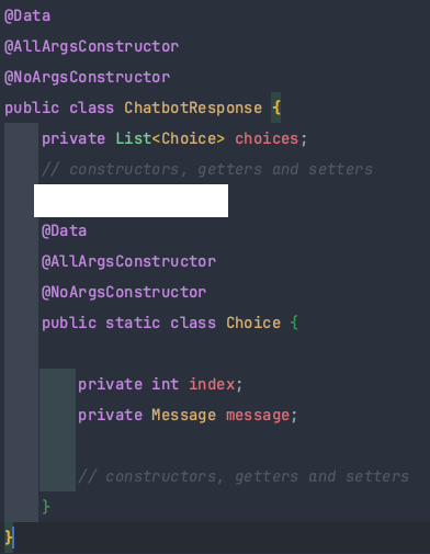 ChatbotResponse response = restTemplate.postForObject(apiUrl, request, ChatbotResponse.class);