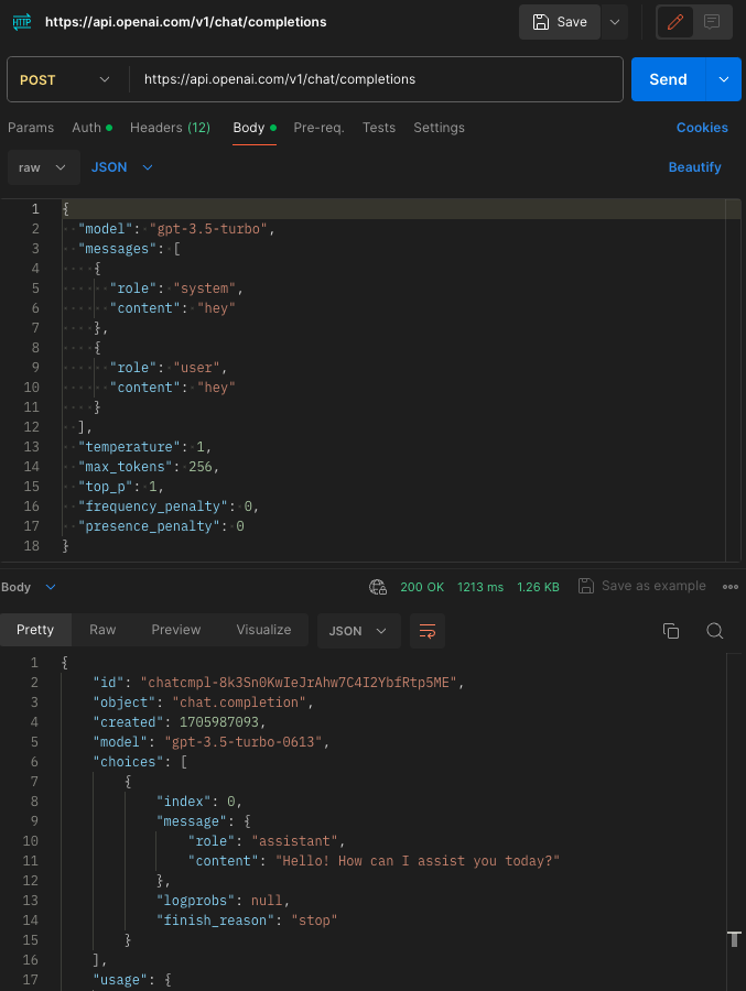 - 특히 Authorization 이 Bearer $OPEN_API_KEY 를 볼 수 있다.