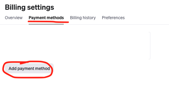 - Payment methods 가 있는 경우, (카드가 등록이 되어있는 경우) 바로 2번을 눌러 카드를 추가해주면 가능 최소 5불 부터 가능