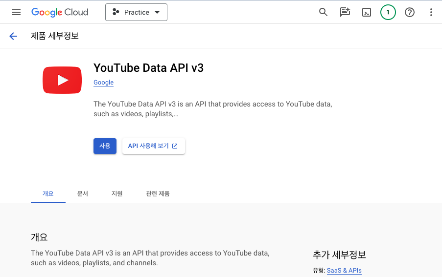 - Youtube Data API v3 선택
