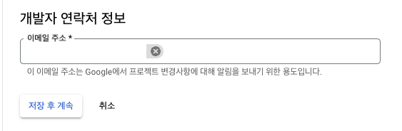 - 개발자 연락처 정보 기입 후 저장 후 계속