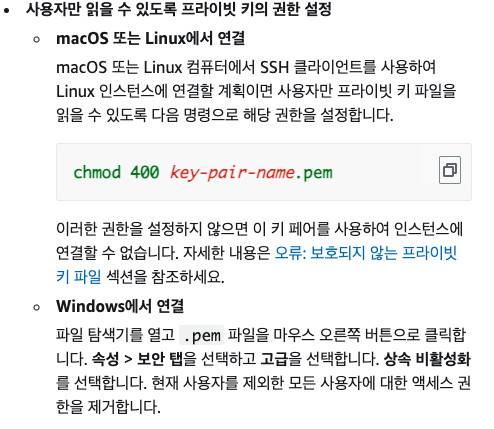 - 저번 포스팅에서 키페어를 생성하여 다운 받았었다. (해당 내용을 보고 싶다면 위 블로그를 클릭)