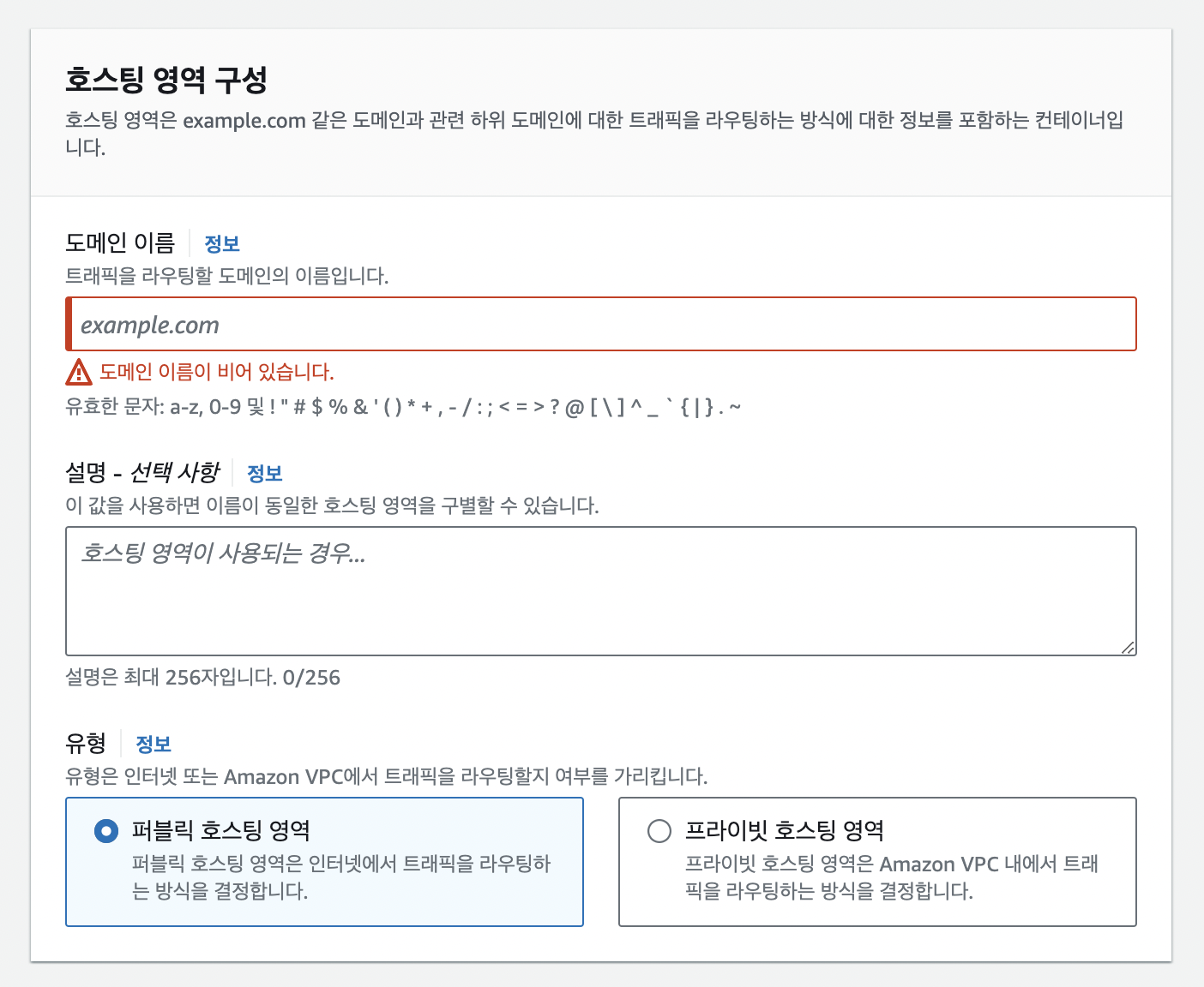 - 호스팅 영역 생성 하기