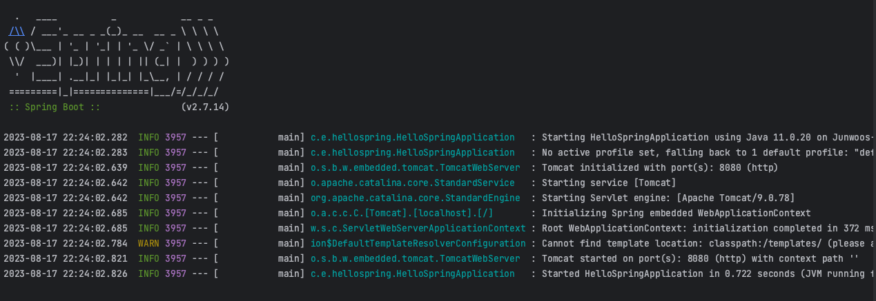src/main/java에 있는 "HelloSpringApplication"을 확인