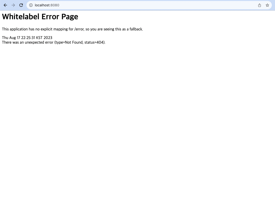 이렇게 에러페이지가 뜨면 성공!