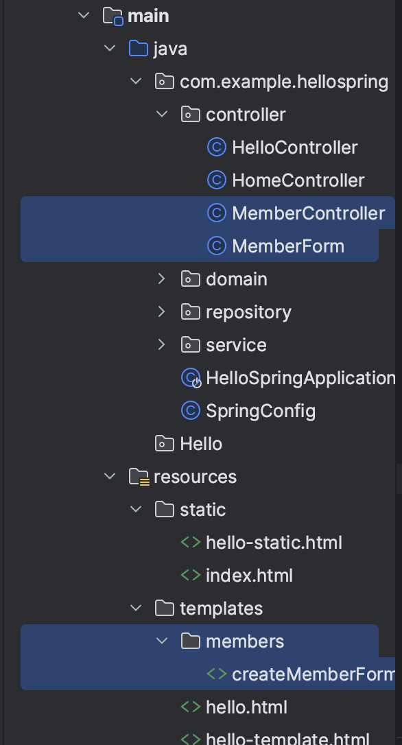 기존에 있던 /members로 이동할 때 (home.html 의 회원 목록을 클릭 했을 때) memberList를 생성해서 보여준다 따라서 createMemberForm.html 에서 memberList.html을 생성